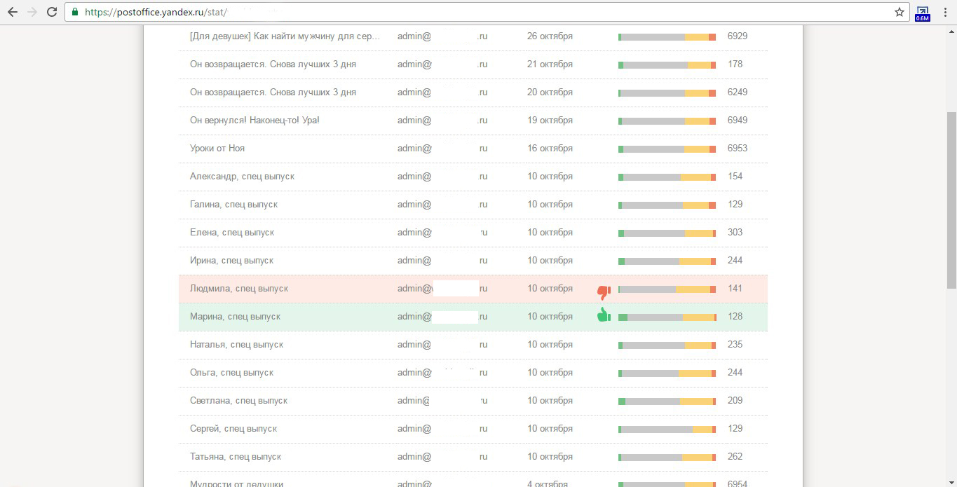 Статистика отправки сообщения POSTOFFICE от yandex.ru